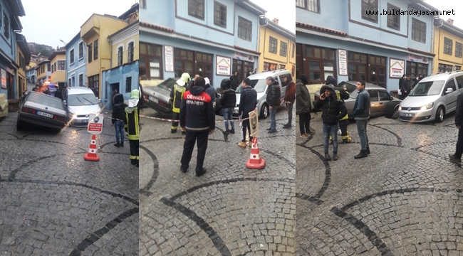 Hamamboğazı olarak bilinen Dokuma Pazarı Caddesi’nde yol çöktü, iki araç çöken yola takıldı.